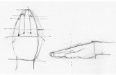 Lightly sketch lines to divide fingers into their simplest form. An arc drawn across the halfway line will determine the knuckle line.