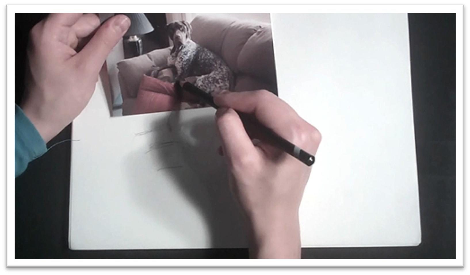 Sketch your dog on a piece of scratch drawing paper, laying down loose, flowing lines of the largest shapes first.