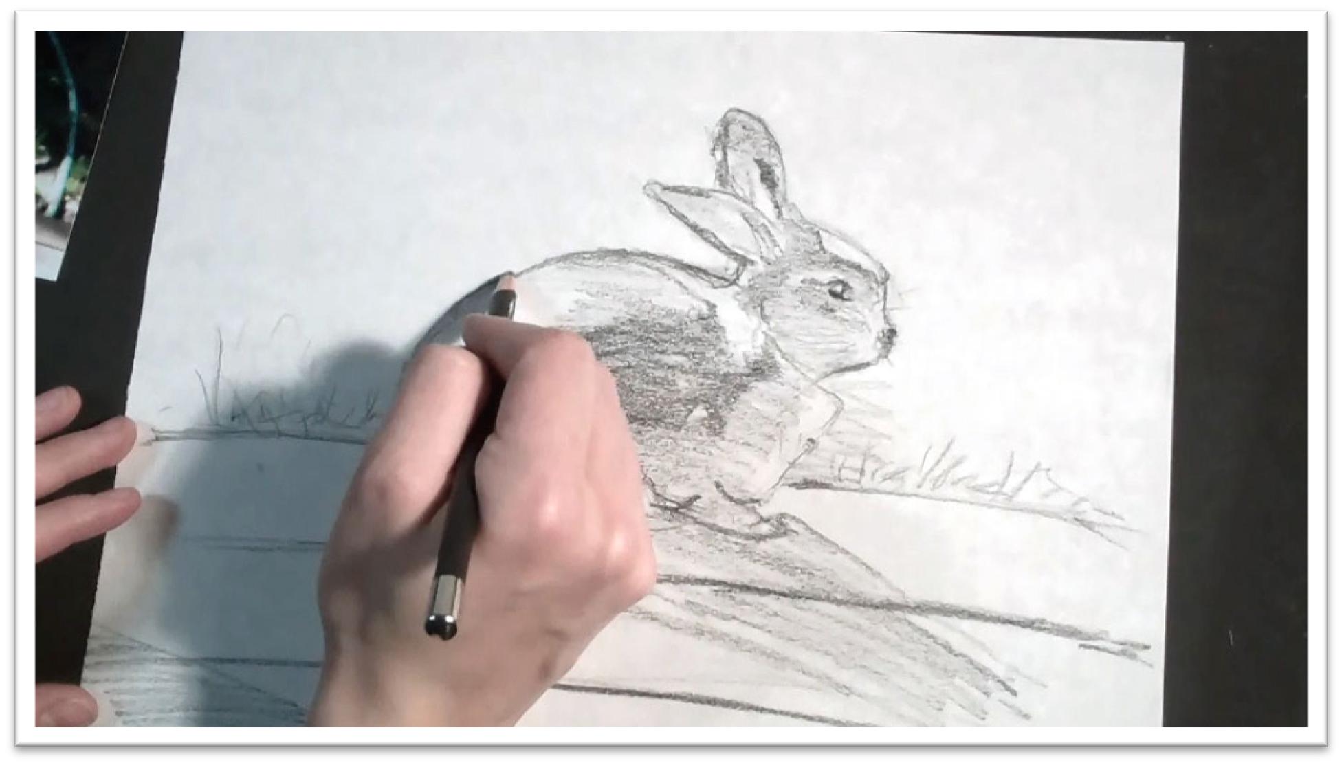 Use drawing implements that won’t allow you to work too tight; a stick of willow charcoal or a blunt pencil are good options.