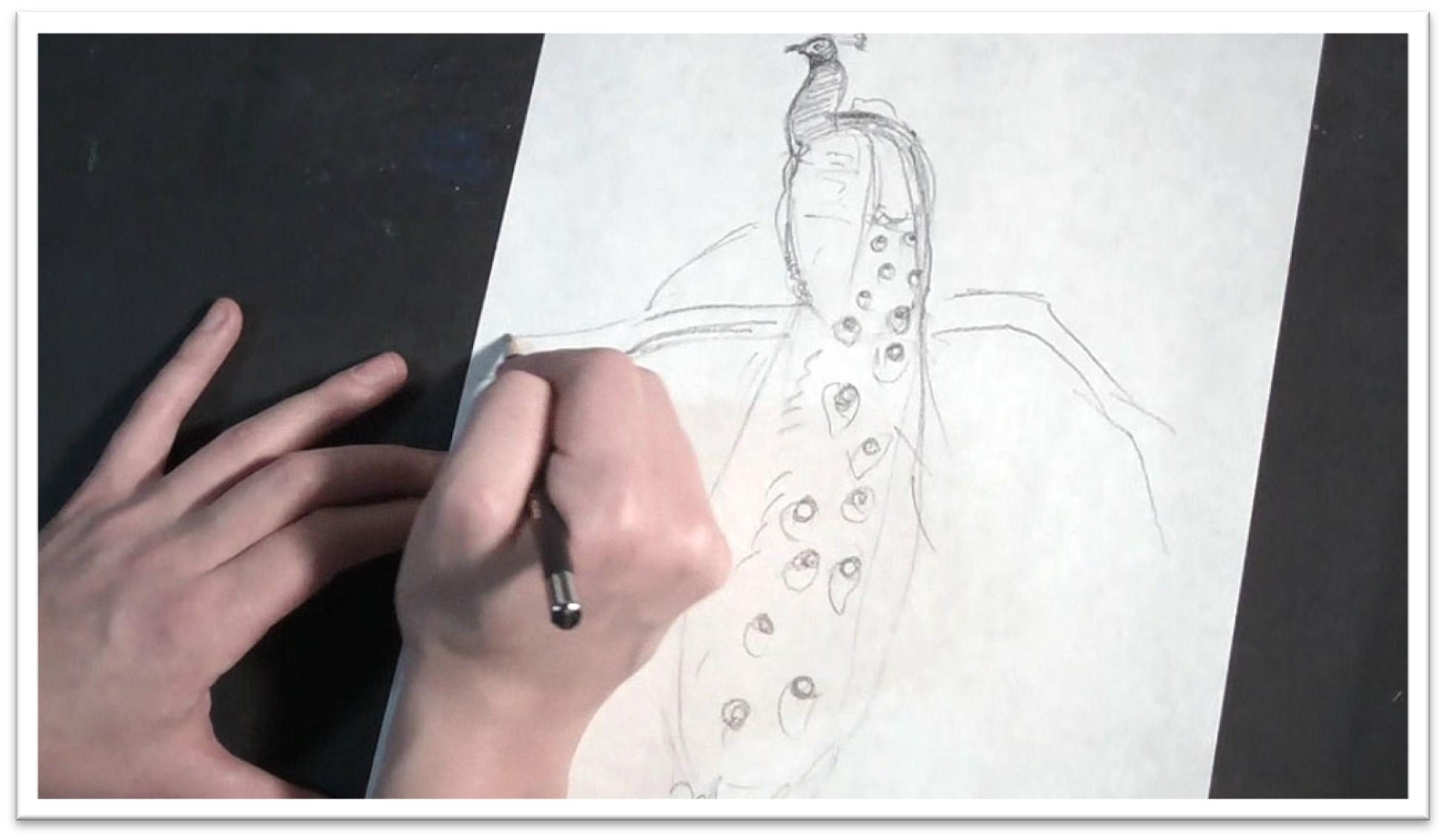 When the outline is complete, lift the transfer and sketch paper off and finish any final details in the drawing directly on the paper.
