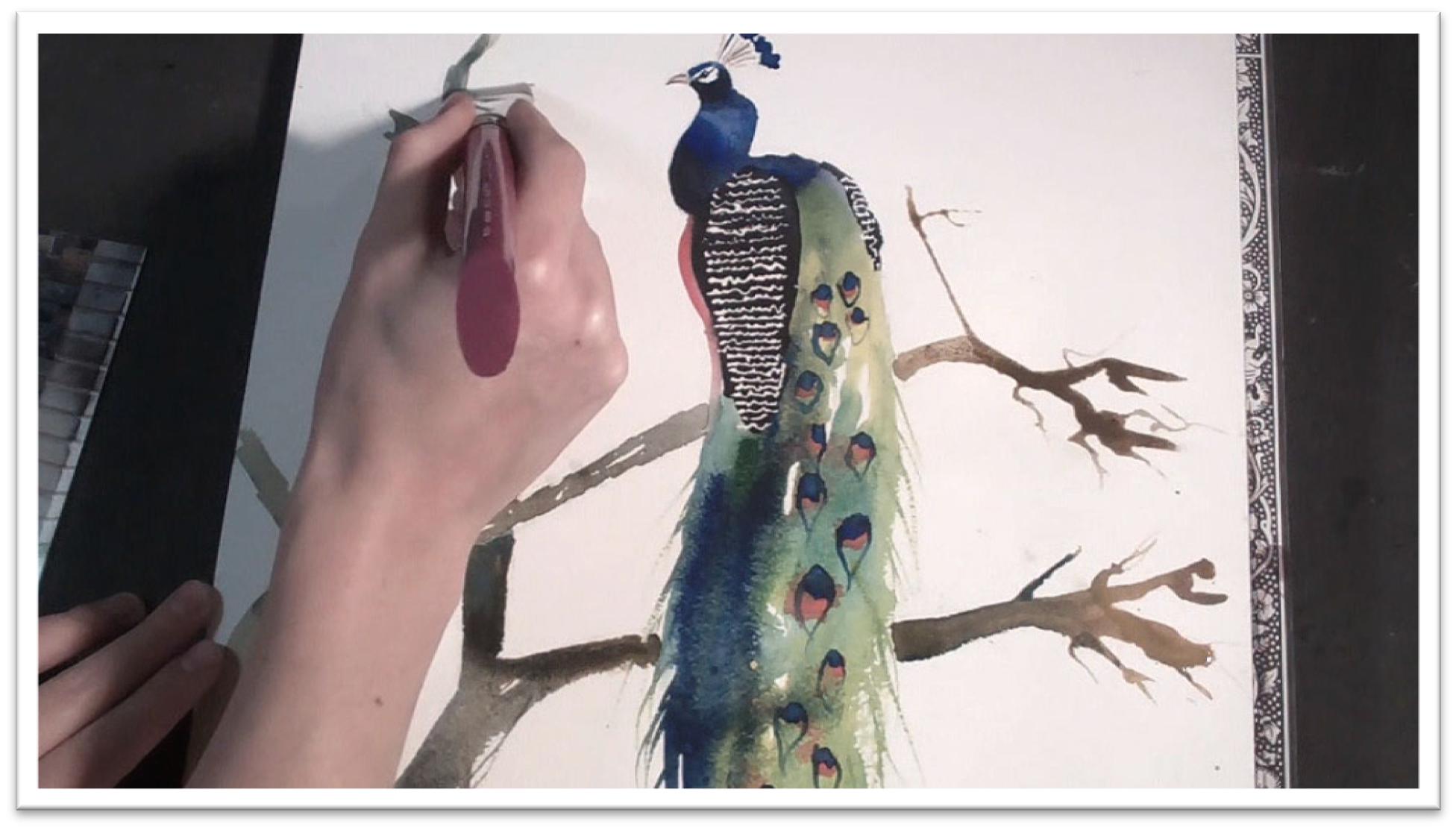 Be careful NOT to touch the paper too often with your fingers. Because the surface is so slick, the oils from your fingers transfer easily to the paper’s surface, and watercolor won’t cover oil.