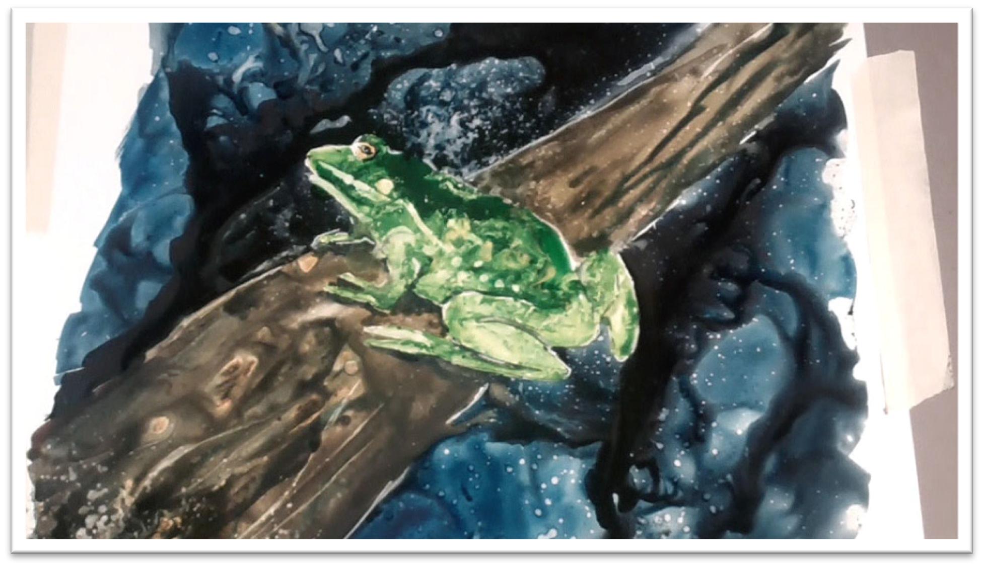 To paint a frog, therefore, you can either make a very tight picture, protecting every highlight and reflective detail, or you can go loose and just focus on getting a general sense of the frog.