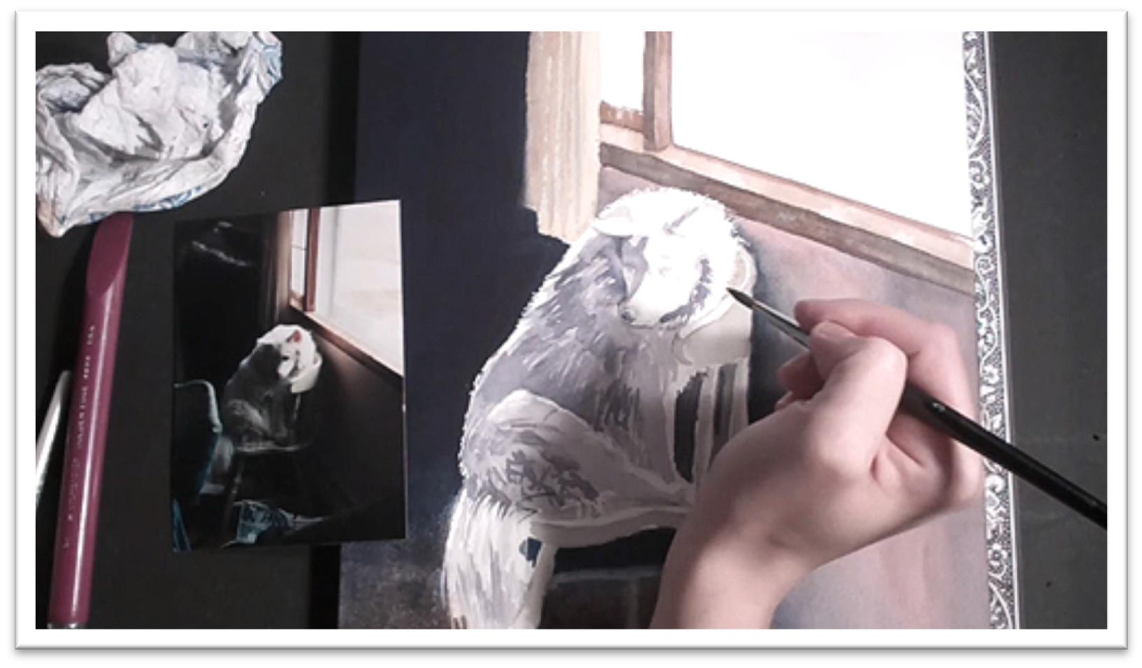 This will be a class in painting not only shaggy fur, but solid white fur.