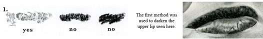 If you are darkening areas of non-smooth skin such as the lips, skip the pencil over the surface in broken lines that follow the shape’s contour.